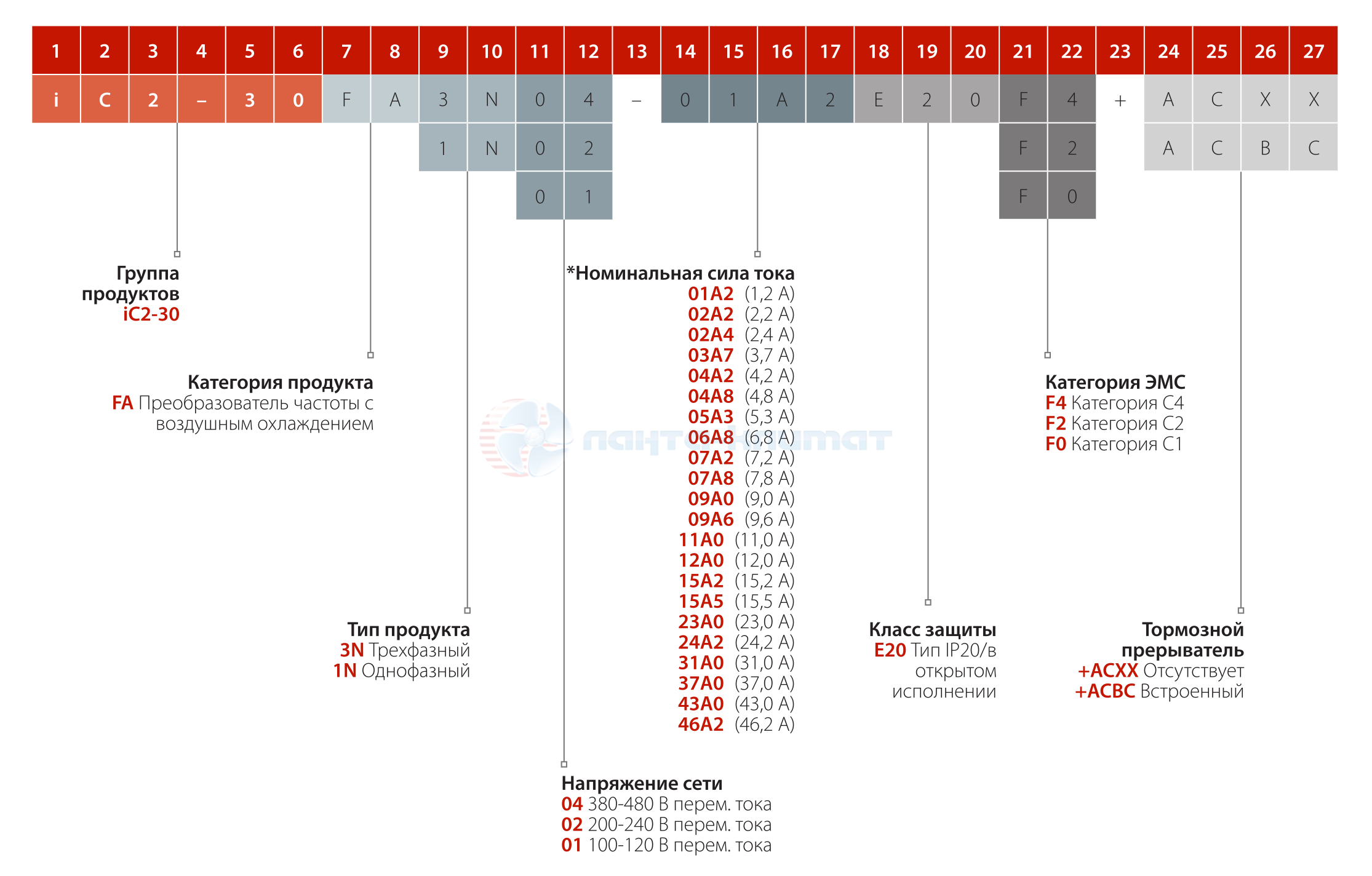 | 132L6137 | IC2-30FA3N04-31A0E20F2+ACBC | 15 kW, 31 A | 3 x 380-480 В | C2 |
