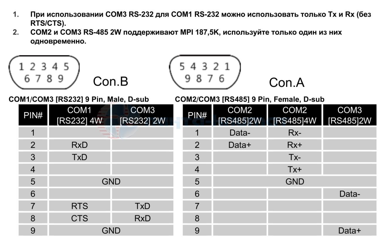 Con.A:COM2 RS-485 2W/4W,COM3 RS-485 2W |