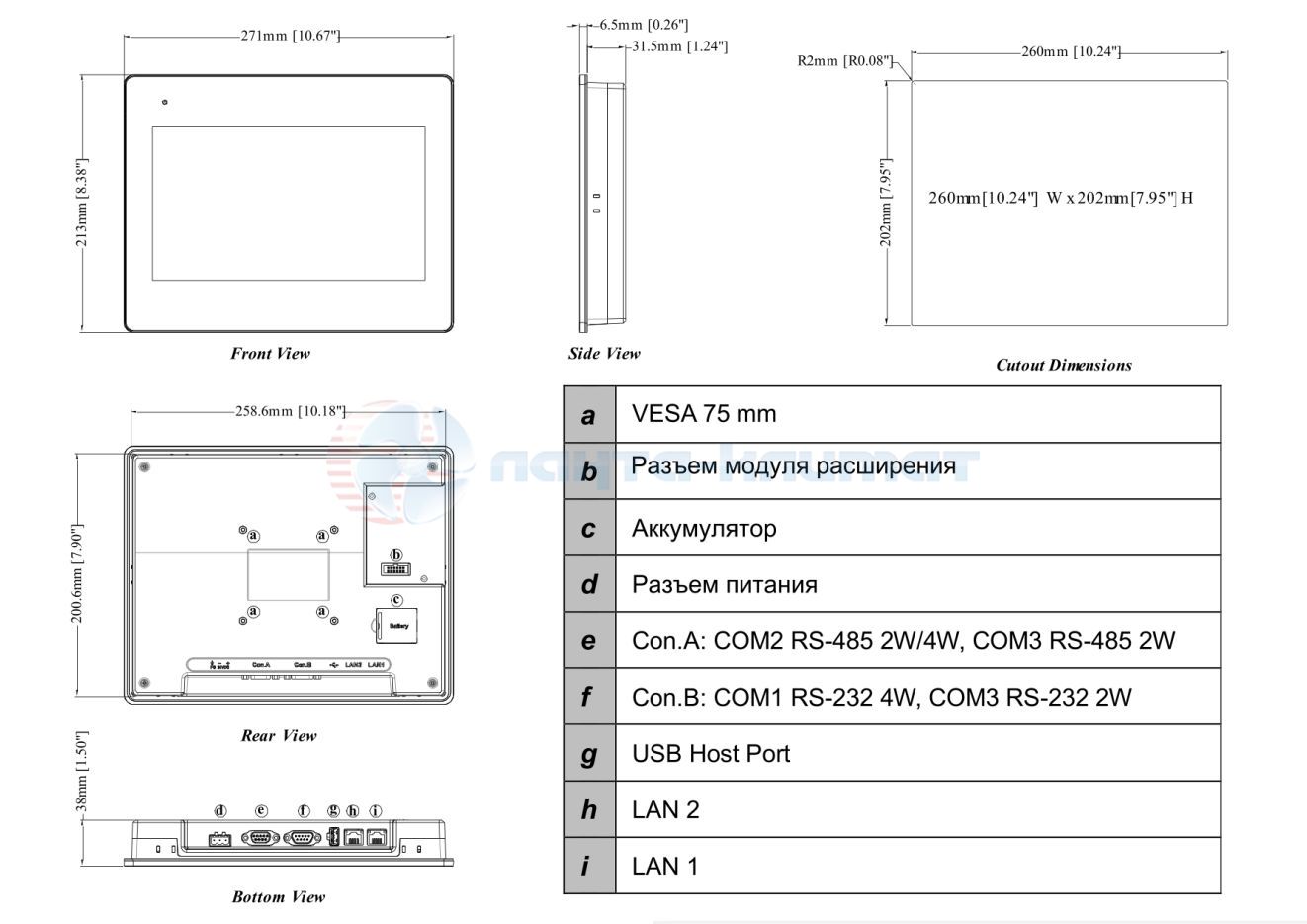 | Посадочное отверстие | 260 x 202 мм |