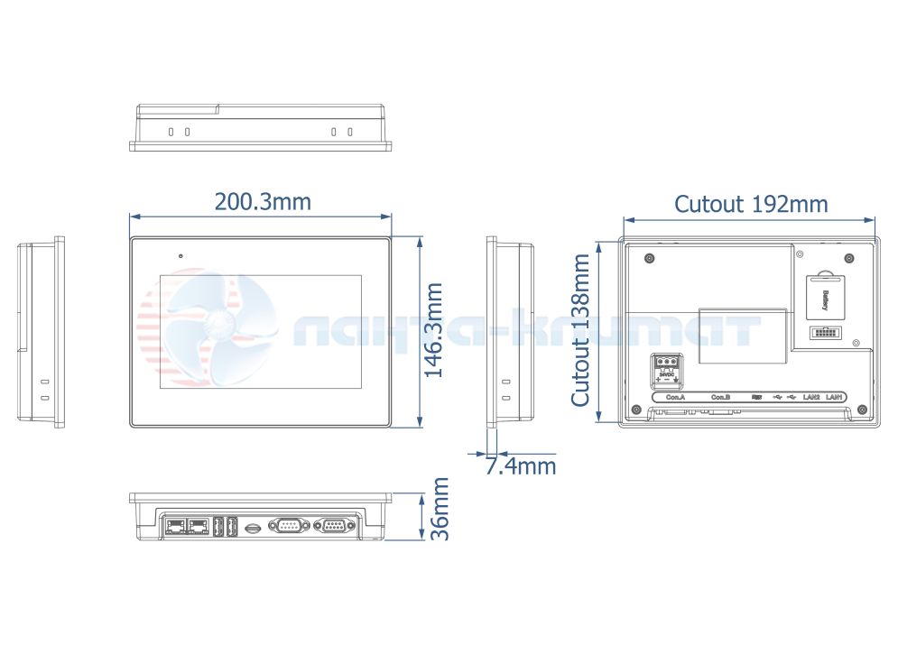 Габариты панели оператора Weintek cMT2058XH (W)