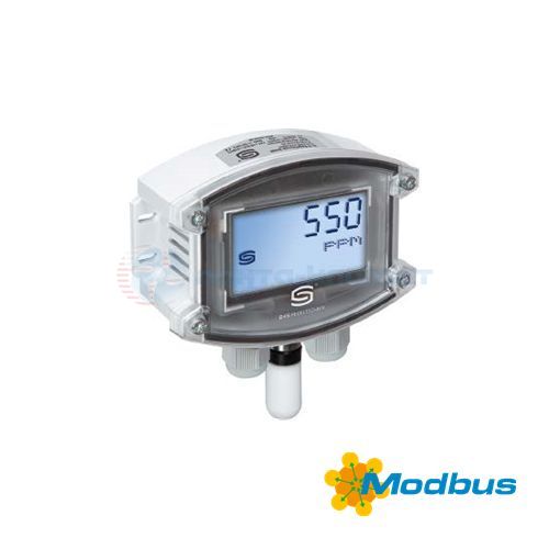 Датчик углекислого газа, температуры, влажности для открытой установки AERASGARD AFTM-CO2-Modbus-LCD от S+S Regeltechnik, с подключением к шине Modbus