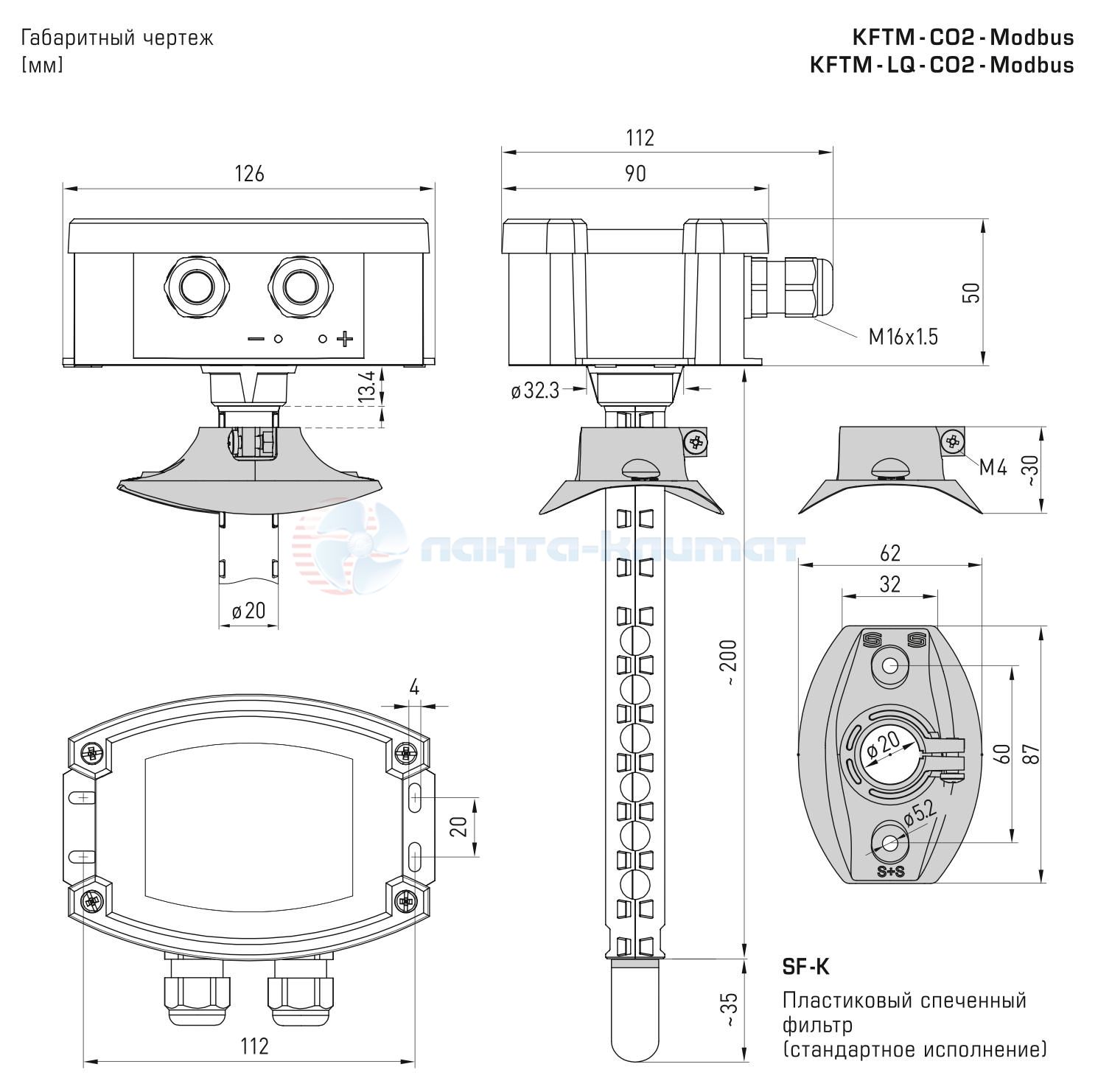 | Защита чувств. элемента | пластиковый спеченный фильтр, Ø 16 мм, L = 35 мм, сменный (опционально — металлокерамический фильтр, Ø 16 мм, L = 32 мм) |