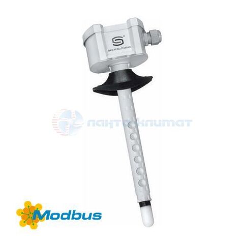 Мультифункциональный канальный датчик S+S Regeltechnik KFTM-LQ-CO2-Modbus LCD с возможностью подключения к шине Modbus, используется для измерения содержания углекислого газа (CO2) (0...5000 ppm), качества и чистоты воздуха VOC (0…100 %), температуры (−35...+80°C) и относительной влажности воздуха (0…100 % отн. вл.).