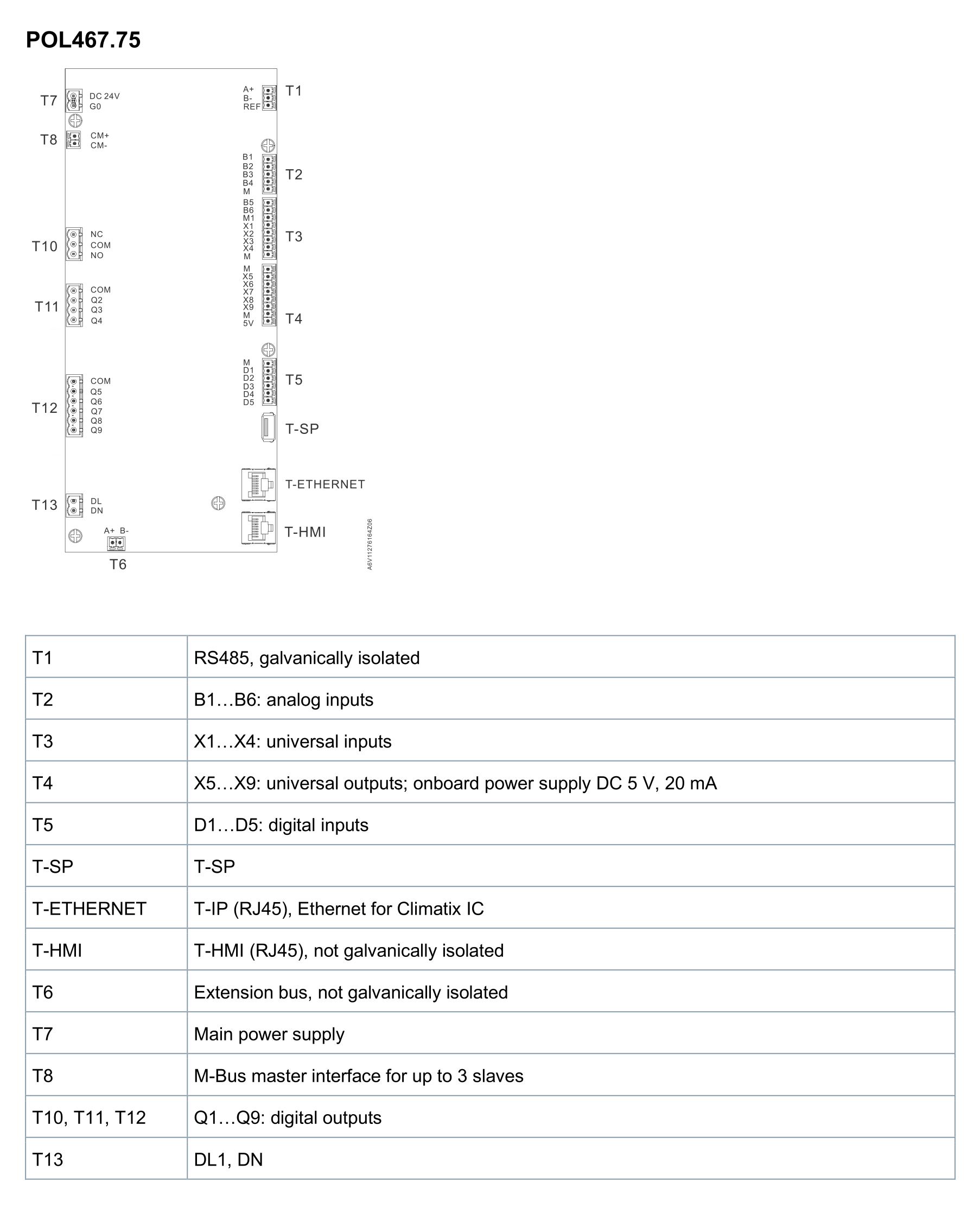 POL467.75/STD - Climatix POL467.75/STD HVAC controller; 24 VDC; 30 I/O incl 2 stepper outputs; RS485; Modbus, BACnet, JSON; USB; no real time clock, no clock reserve; PCB
