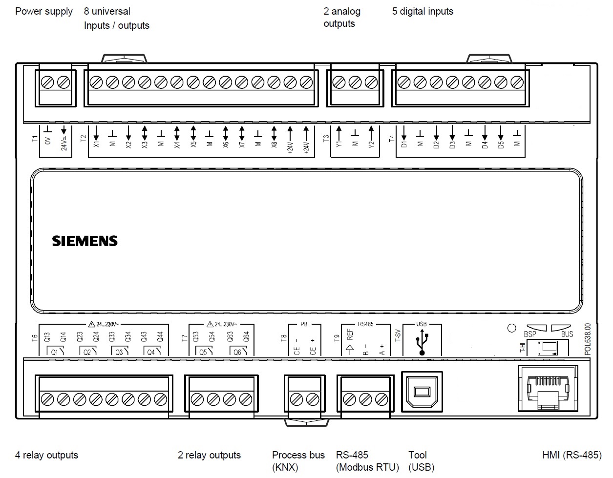 POL635.00/STD - Climatix POL635.00/STD HVAC controller; 24 VAC/DC; 21 I/O; RS485, KNX; Modbus, PL-Link; SD card; USB