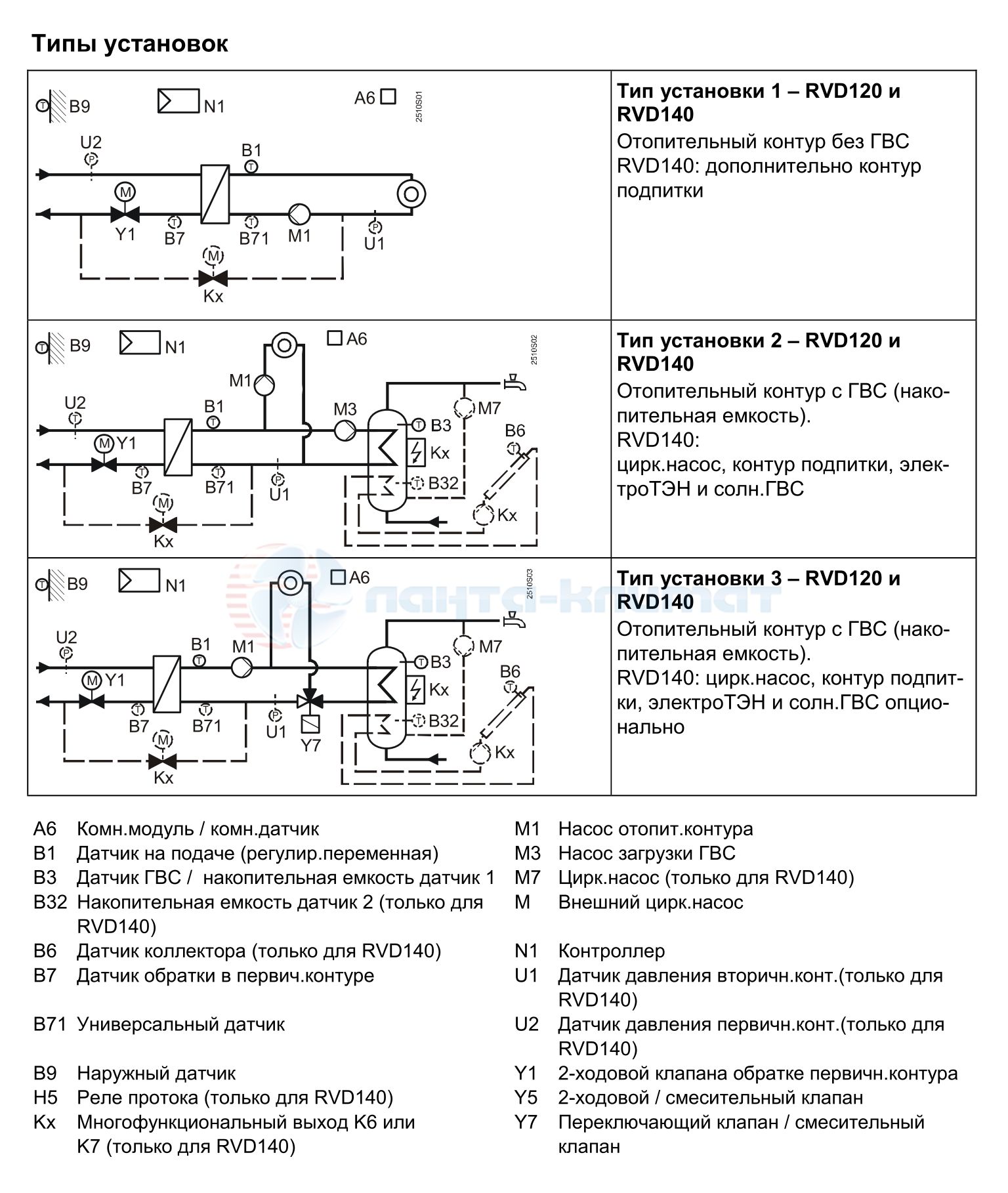 Многофункциональный контроллер отопления Siemens RVD120-A для использования на тепловых пунктах и тепловых станциях с интерфейсом Modbus. Подходит для одного отопительного контура с нагревом ГВС в системах проточного типа или с накопительным баком. 3 запрограммированных типа систем.