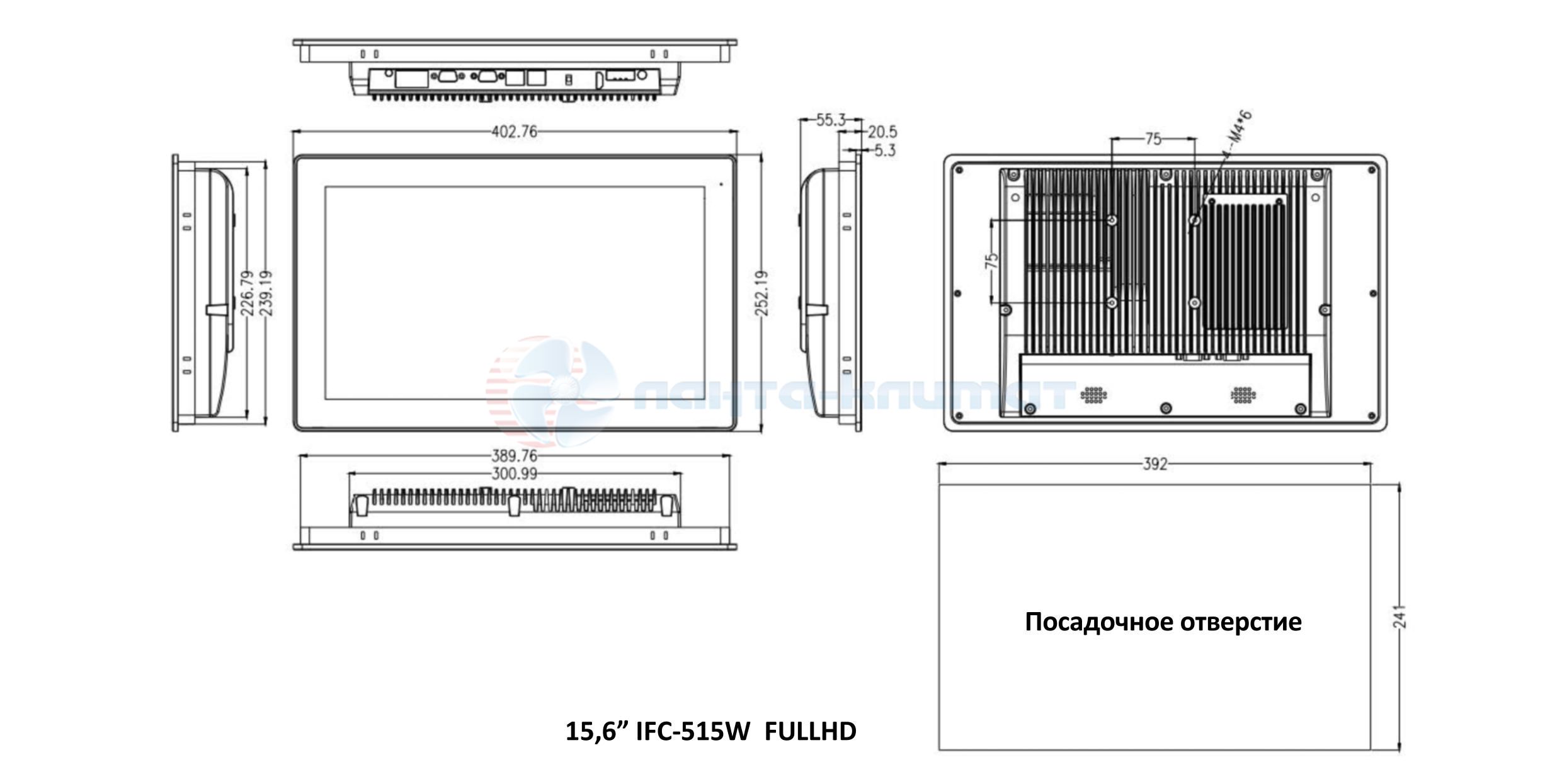 Габариты панельного компьютера IFC-515WR