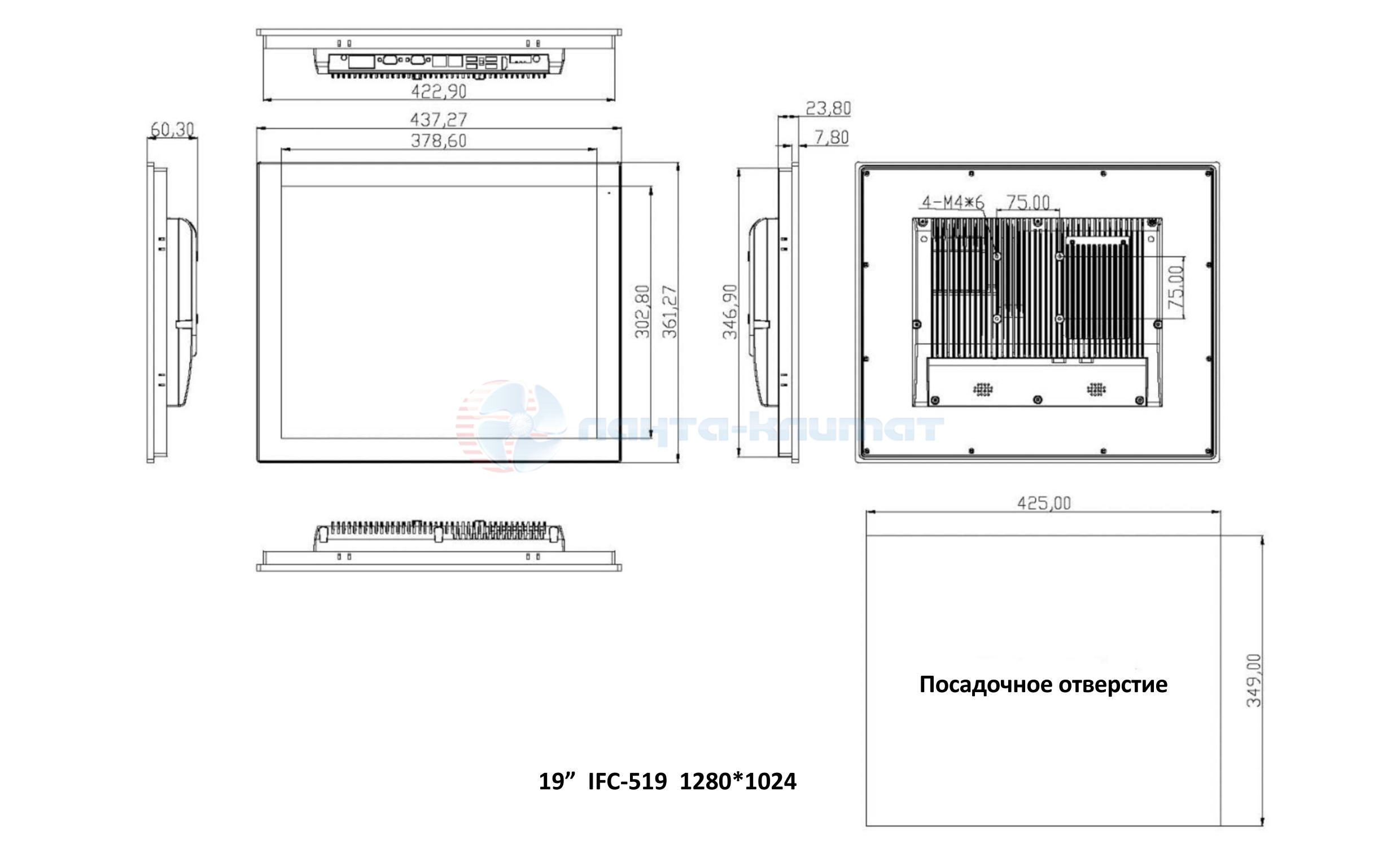 Промышленный панельный компьютер IFC-519R оснащен 19-дюймовым резистивным сенсорным экраном с разрешением 1280x1024 пикселей. Корпус изготовлен из алюминиевого сплава, а водонепроницаемая лицевая панель защищена по стандарту IP65. Пятипроводной резистивный сенсорный экран IFC-515R с защитой от влаги и пыли идеально подходит для работы в суровых промышленных условиях.